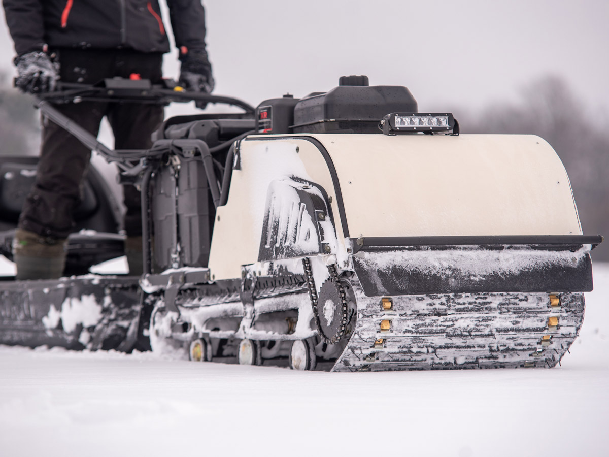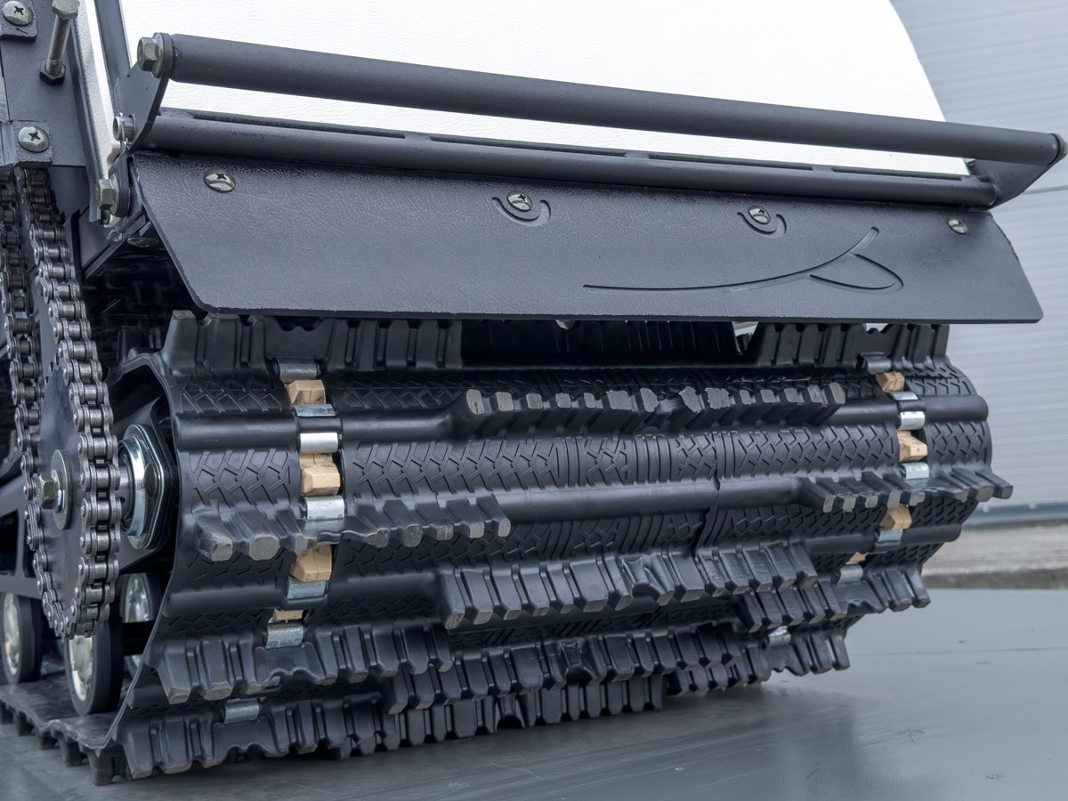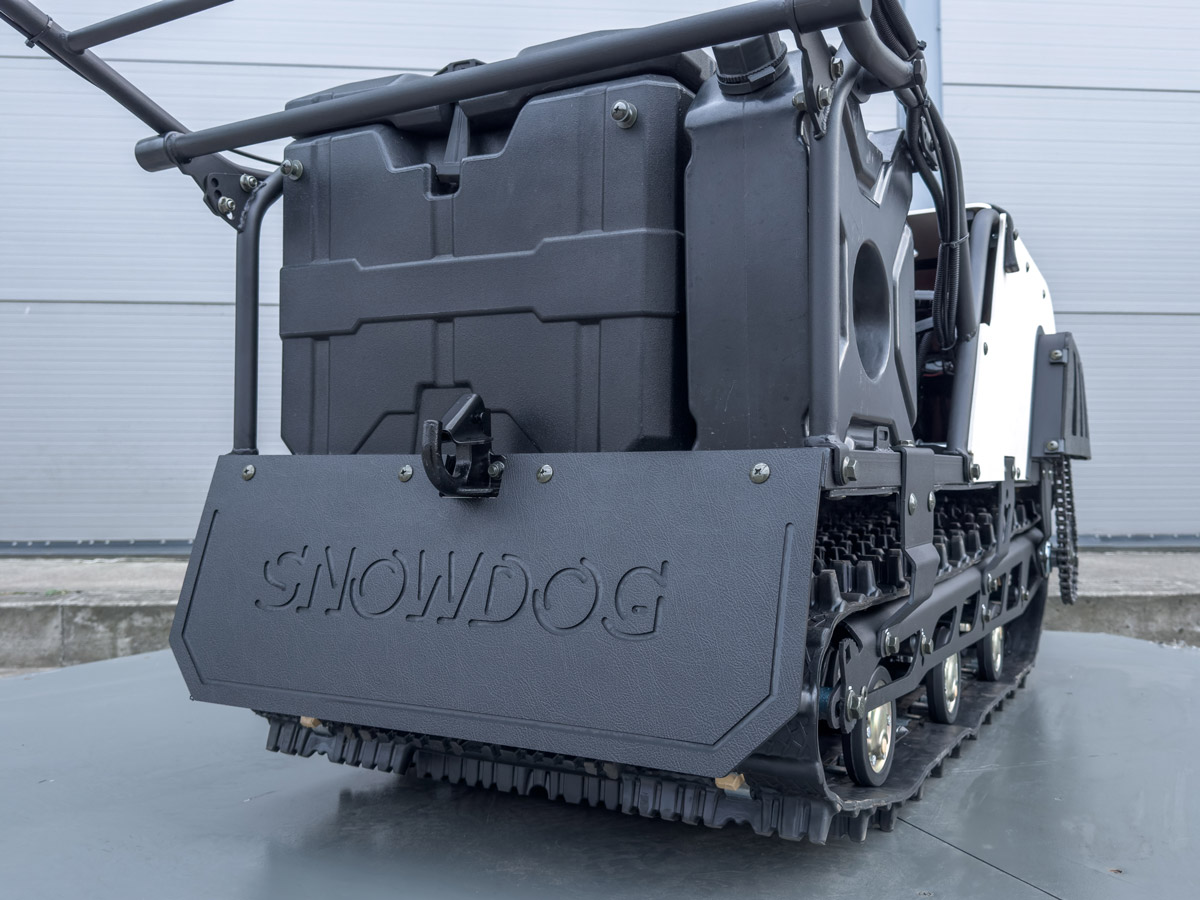 Snowdog Wide — это и самая широкая комплектация: электрическое переключение реверса, 30-ваттная фара, тележки с усиленными пружинами (минимизация переворота), демпфирование руля, металлическая защита рук… Теперь с чехлом, закрывающим двигатель полностью, в стандартной комплектации.