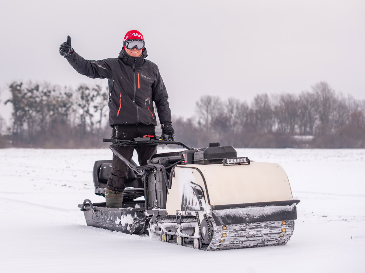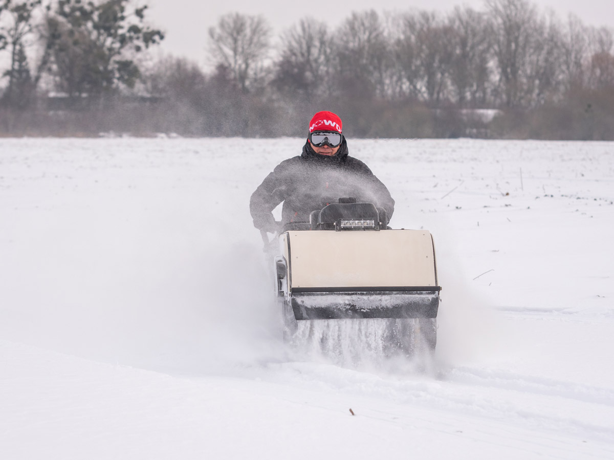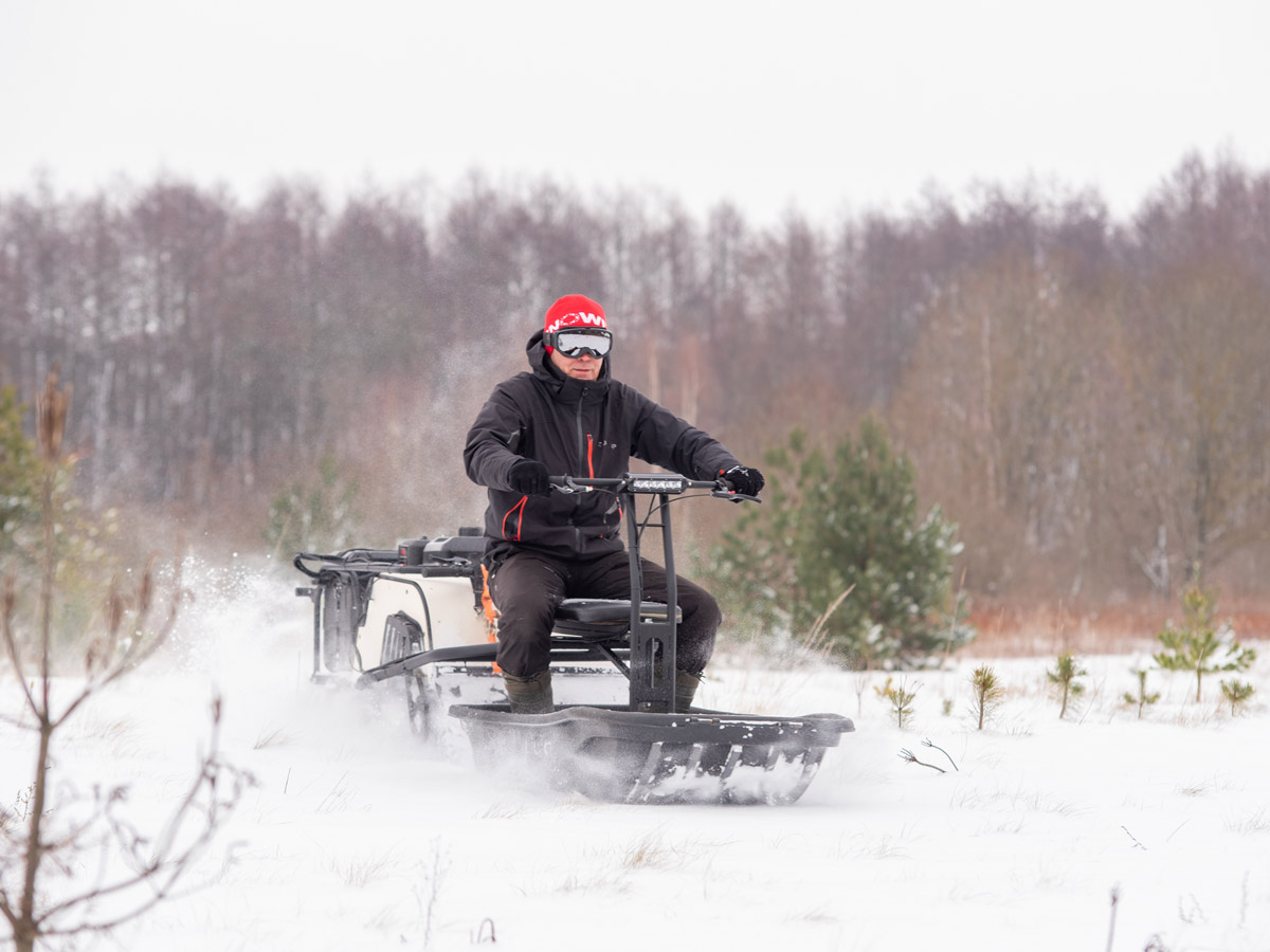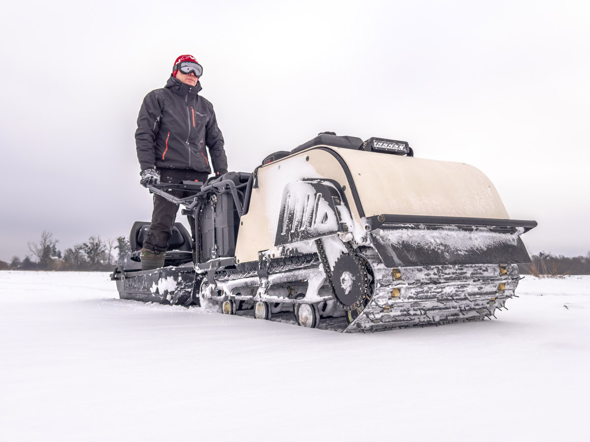 Snowdog Wide — это и самая широкая комплектация: электрическое переключение реверса, 30-ваттная фара, тележки с усиленными пружинами (минимизация переворота), демпфирование руля, металлическая защита рук… Теперь с чехлом, закрывающим двигатель полностью, в стандартной комплектации.