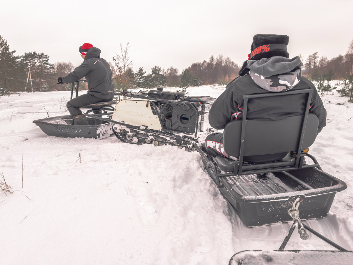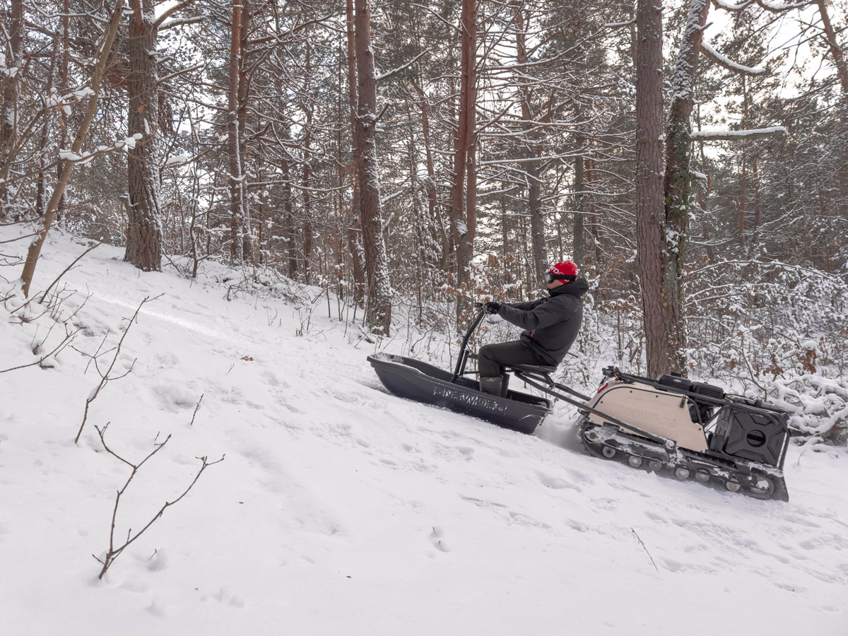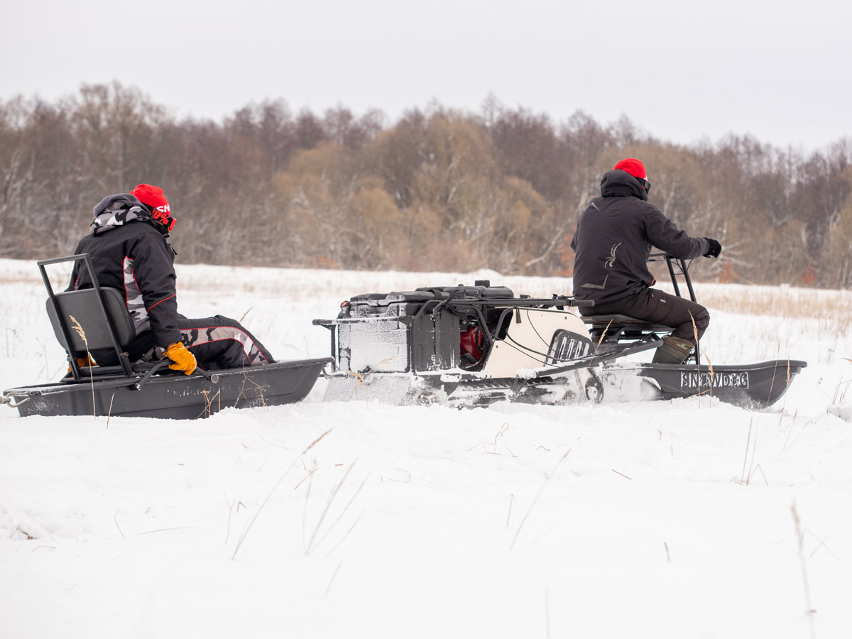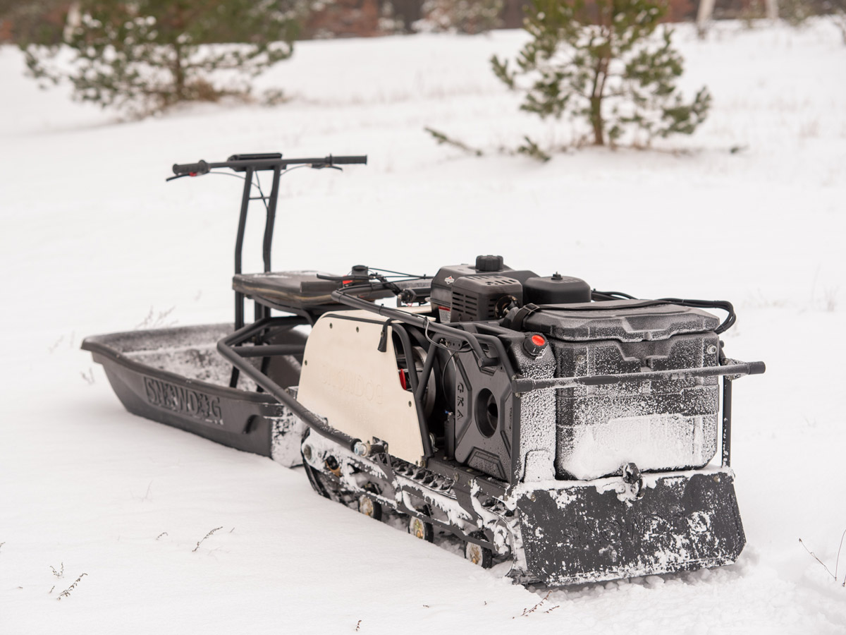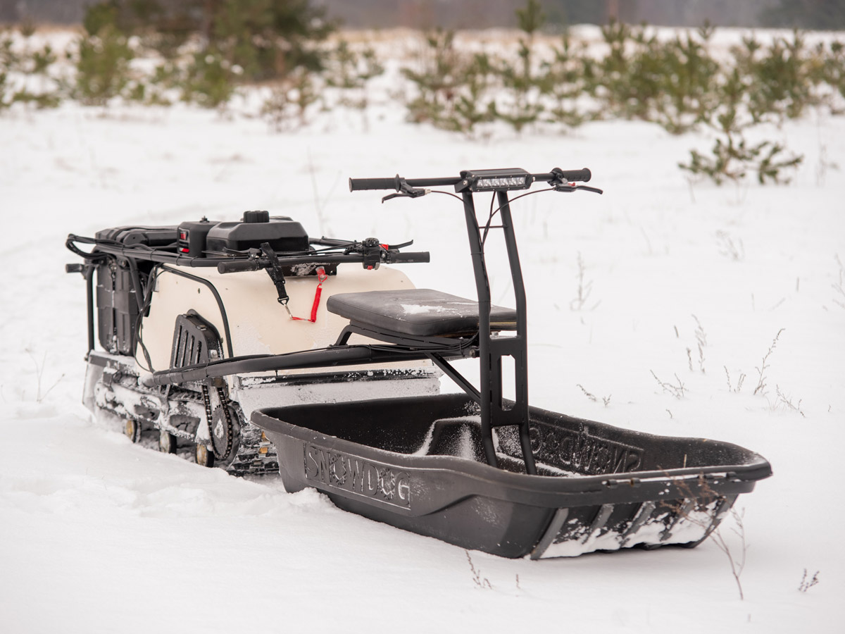 Наиболее эффективно Snowdog Wide проявит себя с модулем «Толкач» и специальными санями для него. Так вы станете владельцем особенной универсальной машины для широкого круга задач в самых различных условиях: глубокий пухлый снег, неровный лёд, склоны, лесистая местность и т.д.